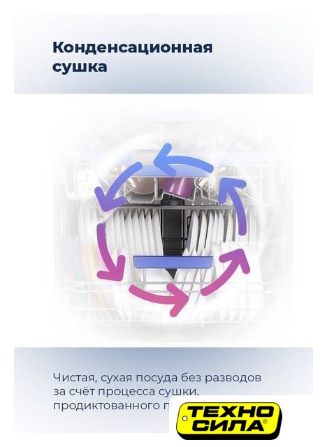 загрузка на 6 комплектов посуды, электронное управление, 6 программ, 55×51.8×45.8 см, белый цвет, сушка: конденсационная, индикация на полу: нет