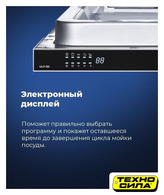 загрузка на 14 комплектов посуды, электронное управление, 5 программ, сушка: стандартная (конденсация), индикация на полу: луч