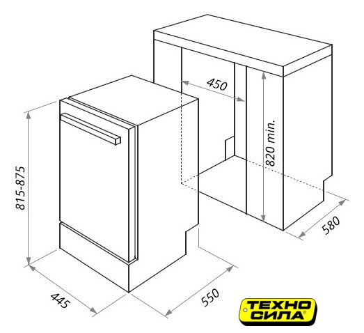 загрузка на 12 комплектов посуды, электронное управление, 6 программ, 59.8x55x82 см, сушка: стандартная (конденсация), индикация на полу: нет