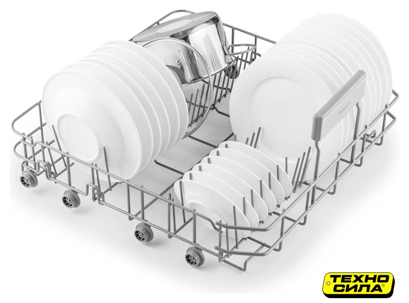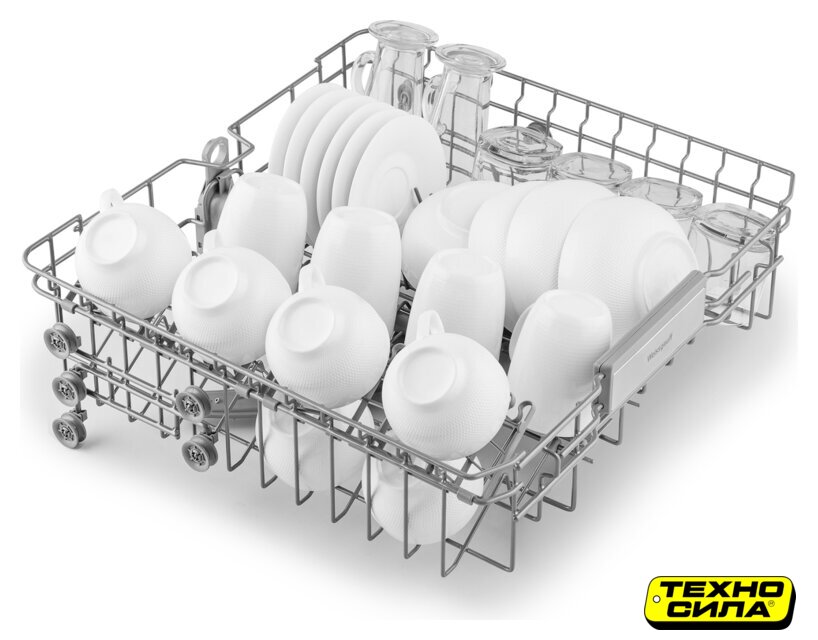 загрузка на 14 комплектов посуды, электронное управление, 5 программ, 59.8×55×82 см, серый цвет, сушка: активная конденсация, индикация на полу: нет