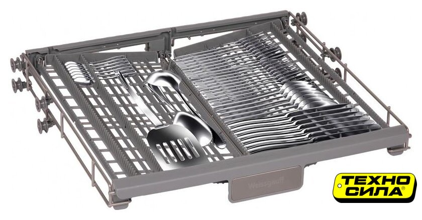 загрузка на 14 комплектов посуды, электронное управление, 6 программ, 59.8×55×82 см, серый/черный цвет, сушка: активная конденсация, половинная загрузка, индикация на полу: нет