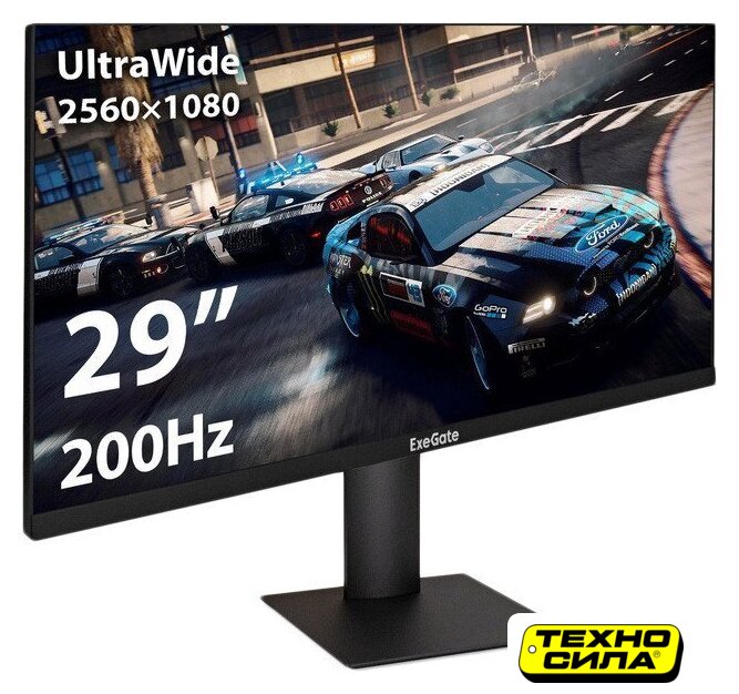29", 2560x1080, 21:9, IPS, 100 Гц, глубина 6 бит + FRC, яркость 250 нит, HDR10, HDMI+DisplayPort