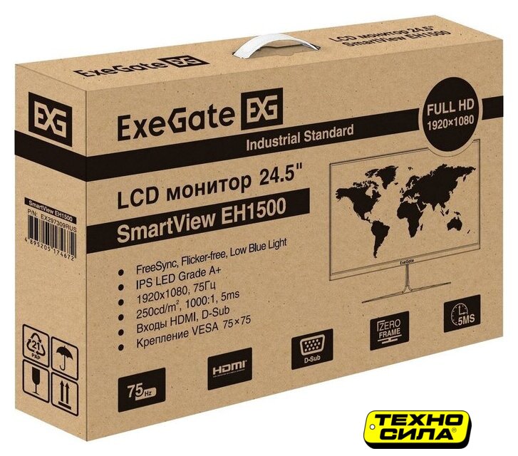 23.8", 16:9, 1920x1080, IPS, 75 Гц, интерфейсы HDMI+D-Sub (VGA)