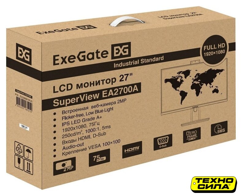 27", 16:9, 1920x1080, IPS, 75 Гц, интерфейсы HDMI+DisplayPort+D-Sub (VGA)