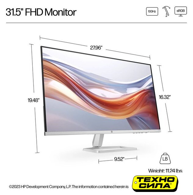 31.5", 16:9, 1920x1080, IPS, 75 Гц, динамики, интерфейсы HDMI+D-Sub (VGA)+DisplayPort
