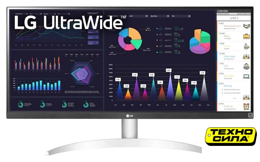29", 21:9, 2560x1080, IPS, 75 Гц, AMD FreeSync, динамики, интерфейсы HDMI+DisplayPort, регулировка высоты, портретный режим