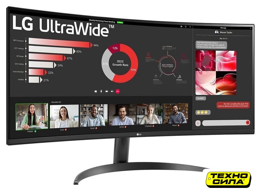 34", 21:9, 3440x1440, VA, изогнутый (1500R), 180 Гц, AMD FreeSync Premium, динамики, интерфейсы HDMI+DisplayPort, регулировка высоты