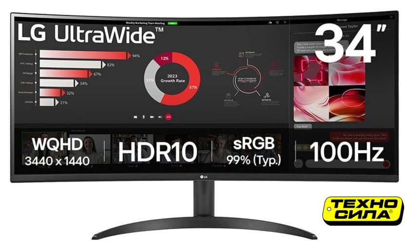 34", 21:9, 3440x1440, VA, 100 Гц, VESA Adaptive-Sync, интерфейсы HDMI+DisplayPort