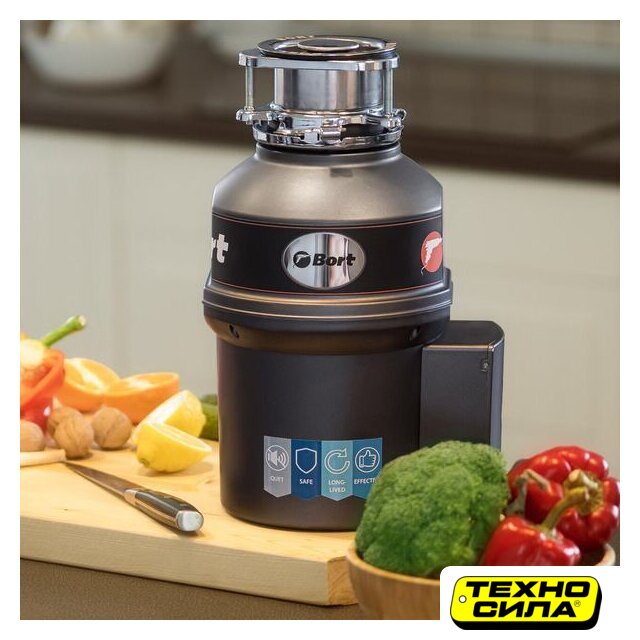 электрический, синхронный двигатель, 0.75 л.с., 600 Вт, 4000 об/мин, управление: пневмокнопка, камера 1.4 л, композитный материал, 5-ступенчатое измельчение, непрерывная загрузка, с защитой от перегрузок, 65 дБ