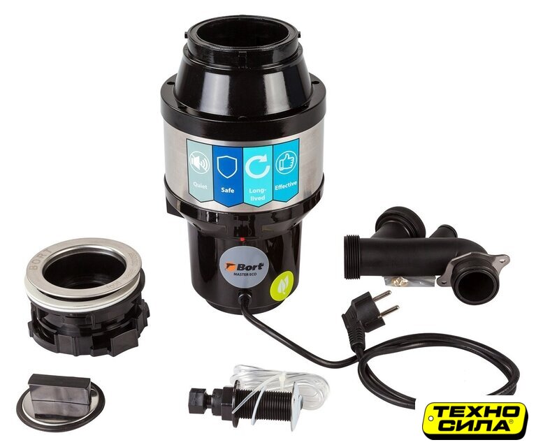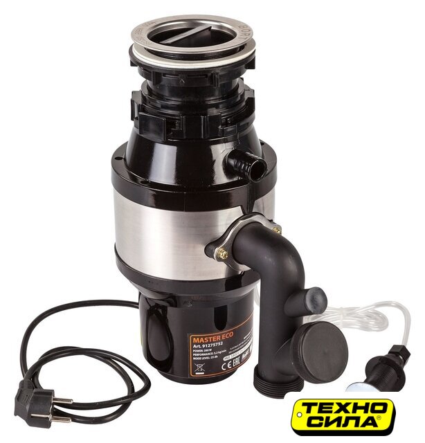 электрический, синхронный двигатель, 0.5 л.с., 375 Вт, 3000 об/мин, управление: пневмокнопка, камера 0.86 л, композитный материал, 3-ступенчатое измельчение, непрерывная загрузка, с защитой от перегрузок, 52 дБ