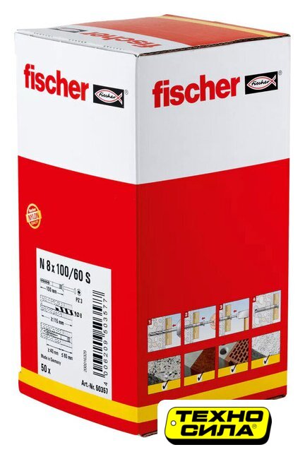 50 в упаковке, 40 x 8 мм, металл/пластик, применение: бетон/полнотелый кирпич/камень