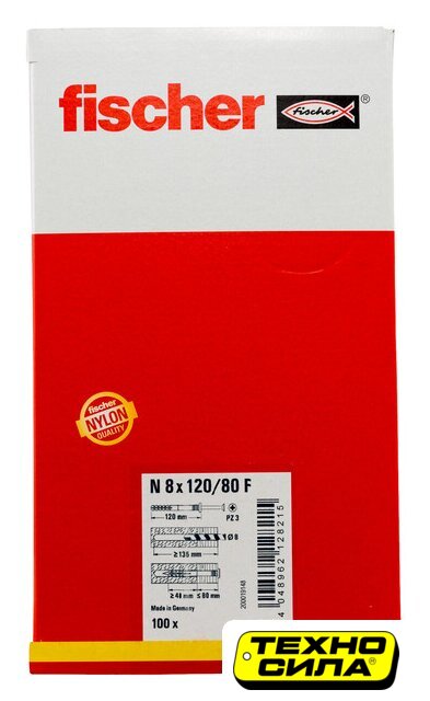 25 в упаковке, 48 x 8 мм, металл/нейлон, оцинкованное покрытие, применение: бетон/газобетон/полнотелый кирпич