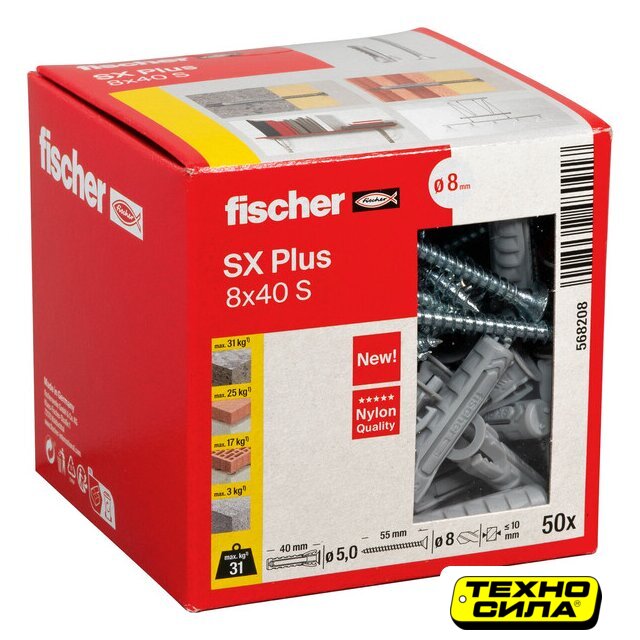 50 в упаковке, 50 x 10 мм, нейлон, применение: газобетон/гипсокартон/пустотелый кирпич