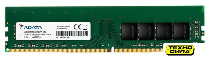 16 ГБ, 1 модуль DDR4 DIMM, частота 3200 МГц, CL 16T, тайминги 16-20-20, напряжение 1.35 В