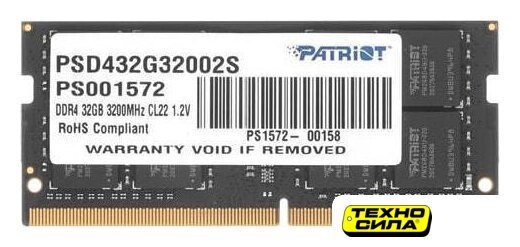 32 ГБ, 2 модуля DDR4 SO-DIMM по 16 ГБ, частота 3200 МГц, CL 20T, тайминги 20-22-22, напряжение 1.2 В