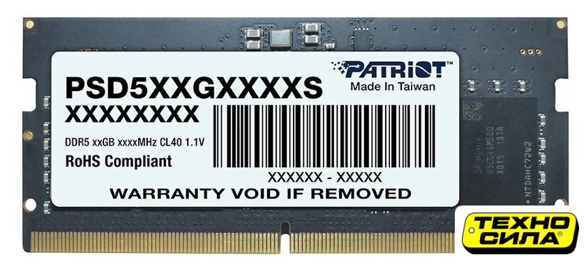 8 ГБ, 1 модуль DDR5 SO-DIMM, частота 4800 МГц, CL 40T, напряжение 1.1 В