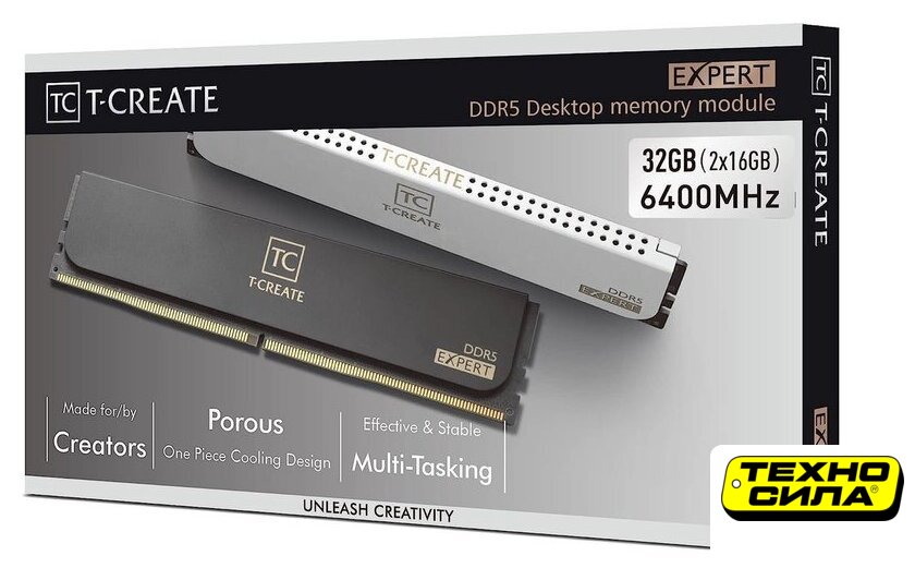 32 ГБ, 2 модуля DDR5 DIMM по 16 ГБ, частота 6400 МГц, CL 32T, тайминги 32-39-39, напряжение 1.35 В