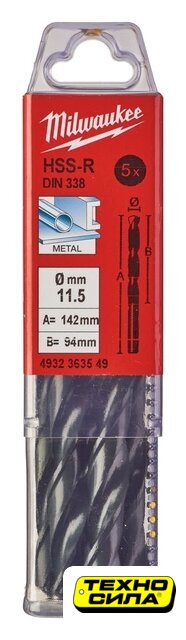 | Комплектация | Сверла по металлу HSS-R D 11,5x94x142 мм |
