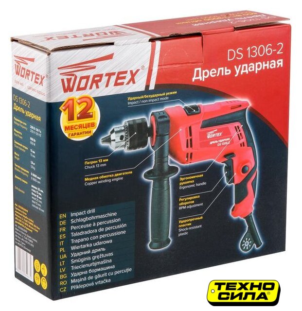 Комплектация | - Дрель;- Ограничитель глубины;- Дополнительная рукоятка;- Поставляется в картонной коробке. |