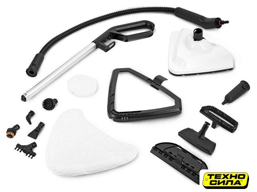 Комплектация | - паровая швабра;- удлинительная ручка;- корпус;- ручной модуль;- резервуар для моющего средства;- крышка резервуара для моющего средства с уплотнительным кольцом;- резервуар для воды;- фильтр для смягчения воды с уплотнительным кольцом;- щетка для пола;- тряпка для пола;- рамка для ковра;- паровой шланг с уплотнительным кольцом;- струйная насадка с уплотнительным кольцом;- насадка для отпаривания;- скребок для стекла с резиновой вставкой;- ворсовая щетка;- угловая насадка;- скребок;- круглая нейлоновая щетка;- плоская нейлоновая щетка;- руководство по эксплуатации. |