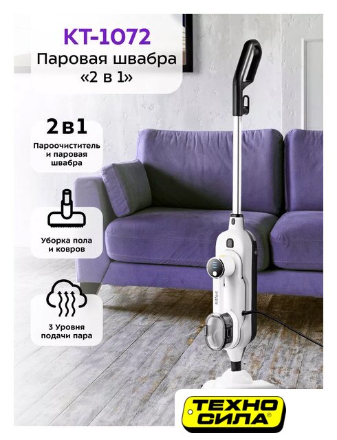паровая швабра, 1300 Вт, пар 25 г/мин, бак 0.38 л