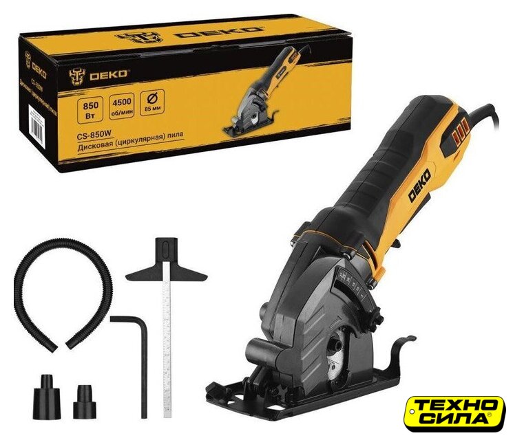 | Комплектация | - Дисковая (циркулярная) пила – 1 шт.- Пильный диск ø85хø10х1,9мм 30T – 1 шт.- Параллельный упор – 1 шт.- Шестигранный ключ – 1 шт.- Пылеотводный шланг - 1 шт.- Вакуумный адаптер - 2 шт.- Угольные щетки – 2 шт.- Руководство по эксплуатации- Коробка |