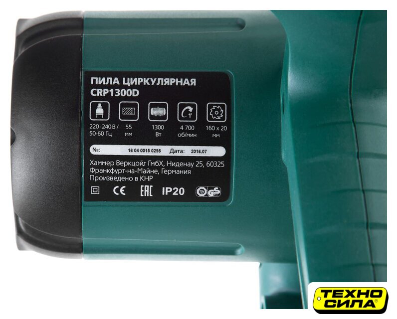 дисковая (циркулярная), питание: аккумулятор (20 В), диаметр диска: 165 мм, 4500 об/мин, аккумулятор в комплекте