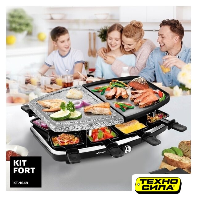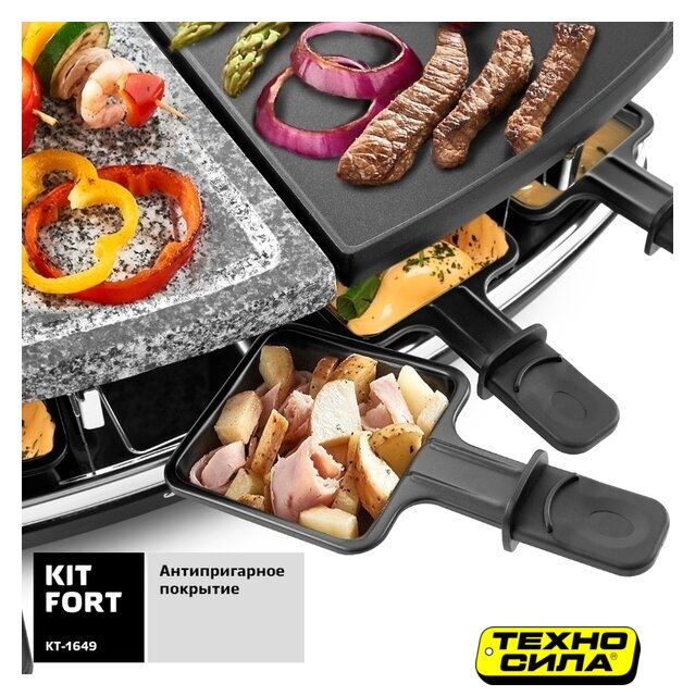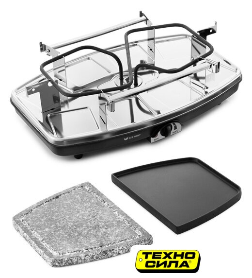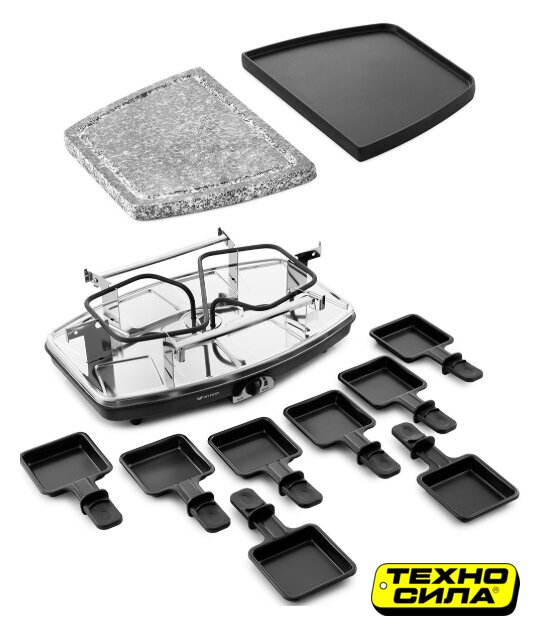 Комплектация | Раклетница - 1 штКаменная плита - 1 штПанель с антипригарным покрытием - 1 штПорционные сковородки с антипригарным покрытием - 8 штРуководство по эксплуатации - 1 штГарантийный талон - 1 шт |