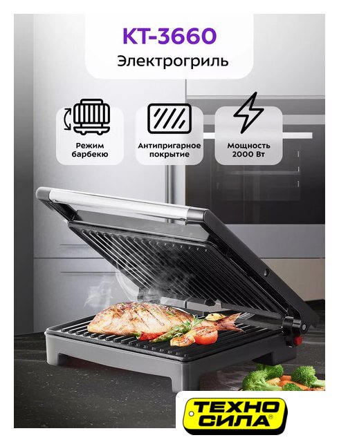 1500 Вт, универсальный, двухсторонний (гриль-пресс), габариты 260x333 мм, рабочая поверхность 278x170 мм