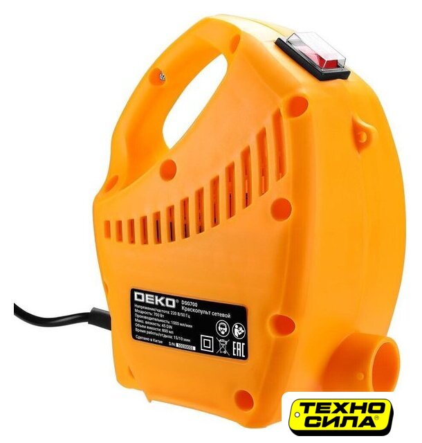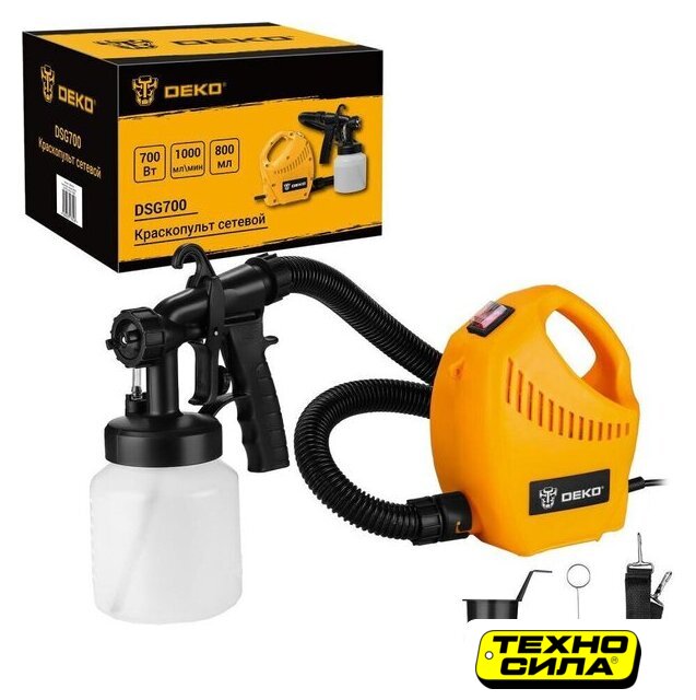Комплект поставки | - Корпус краскопульта – 1 шт.- Пистолет-распылитель – 1 шт.- Шланг гофрированный – 1 шт.- Бачок для краски – 1 шт.- Ремень для переноски – 1 шт.- Стакан для измерения вязкости материала – 1 шт.- Игла для прочистки сопла – 1 шт.- Руководство по эксплуатации- Коробка |