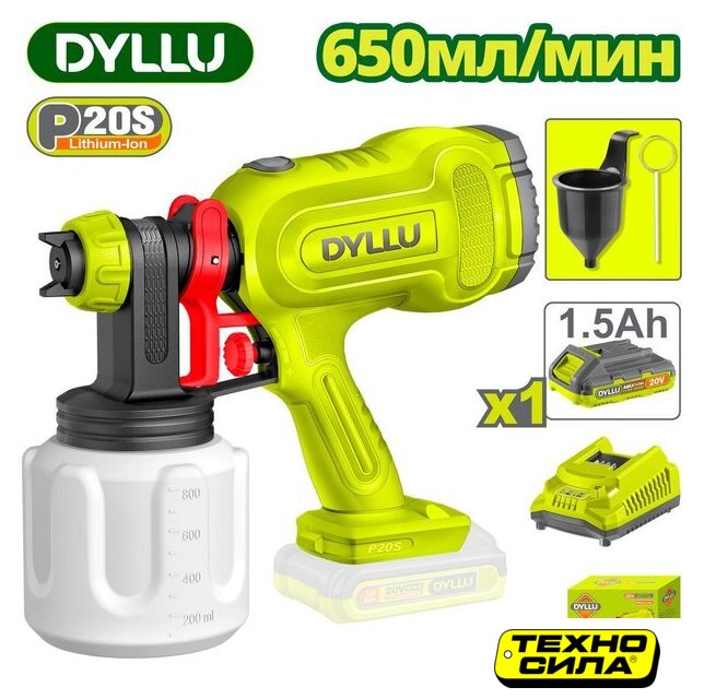 Комплект поставки | - Краскораспылитель - 1 шт.- Аккумулятор DTLBP515 1,5 Ач - 1 шт.- Зарядное устройство DTFCP518 - 1 шт.- Мерная чаша для измерения вязкости - 1 шт.- Игла для чистки - 1 шт.- Инструкция- Коробка |