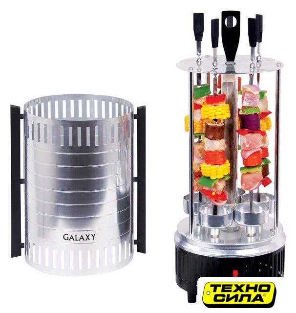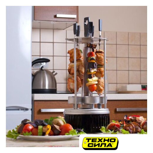 1000 Вт, 5 шампуров, серебристый, 39×21.5×39 см, 1.6 кг