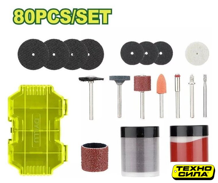 Комплектация | - Шлифовальная лента - 4 шт.- Шлифовальный камень - 2 шт.- Нейлоновая щетка - 1 шт.- Направляющая - 2 шт.- Быстрорез - 1 шт.- Полировальный диск - 4 шт.- Усиленный отрезной диск - 4 шт.- Полировальная паста - 1 шт.- Отрезной диск - 20 шт.- Шлифовальный диск - 40 шт.- Шлифовальный барабан с направляющей - 1 шт.- Кейс |