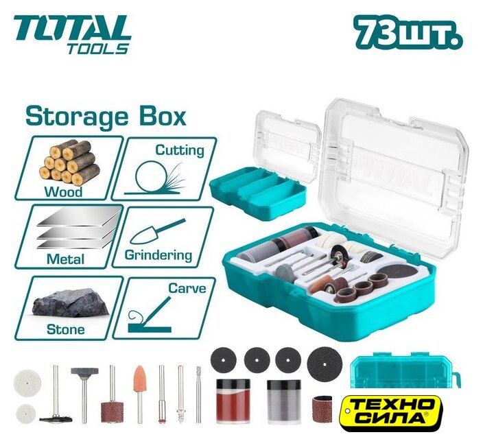 Комплектация | Шлифовальные ленты (Sanding Band) - 4 шт.Шлифовальные камни (Grinding stone) - 2 шт.Отрезные круги (Cut-Off Wheel) - 36 шт.Шлифовальные диски (Sanding Disc) - 20 шт.Усиленный отрезной круг (Reinforced Cut-Off Wheel) - 1 шт.Полировальные круги (Polishing Wheel) - 4 шт.Полировальная паста (Polishing compound) - 1 шт.Фреза (High Speed Cutter) - 1 шт.Нейлоновая щетка (Nylon brush) - 1 шт.Опорные стержни (держатели) (Mandrel) - 2 шт.Шлифовальный барабан с опорным стержнем (Sanding drum with mandrel) - 1 шт.Пластиковый кейс (коробка с органайзером). |