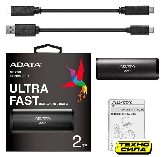 SSD, USB 3.2 Gen2 (10 Гбит/с), металл/пластик, цвет черный