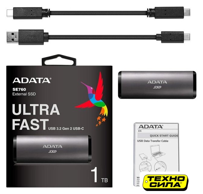 SSD, USB 3.2 Gen2 (10 Гбит/с), цвет темно-серый