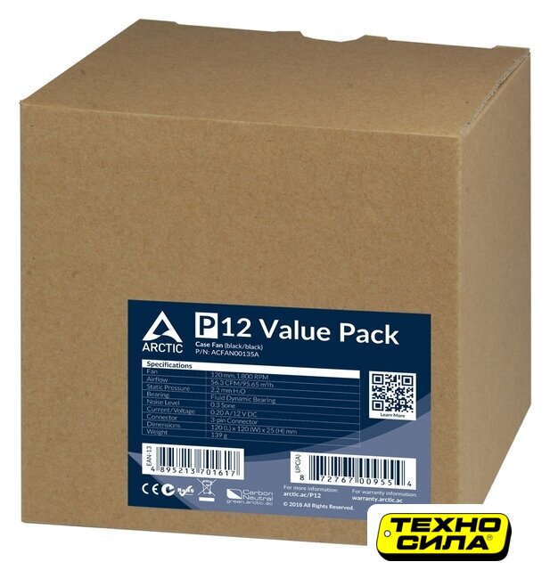 вентилятор для корпуса, шум 31.5 дБ, вентилятор 120 мм, 2000 об/мин, PWM
