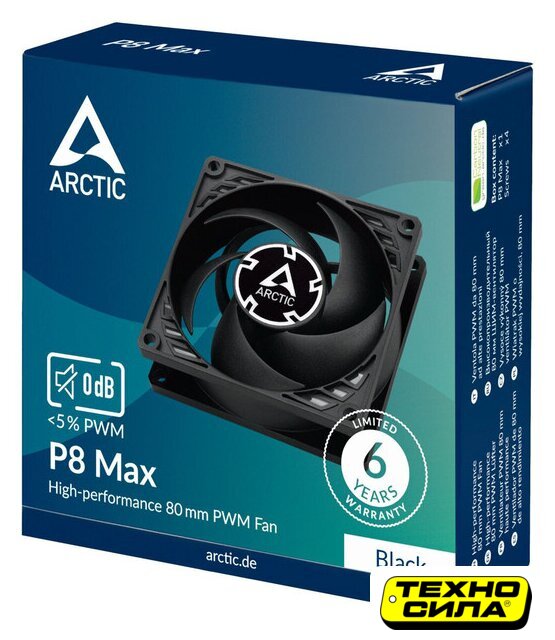вентилятор для корпуса, шум 22.5 дБ, вентилятор 80 мм, 3000 об/мин, PWM