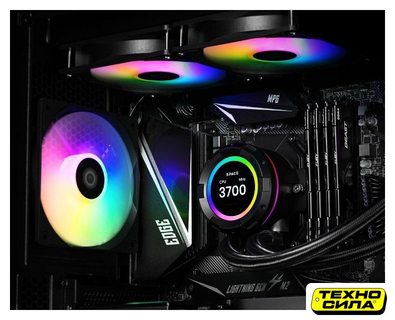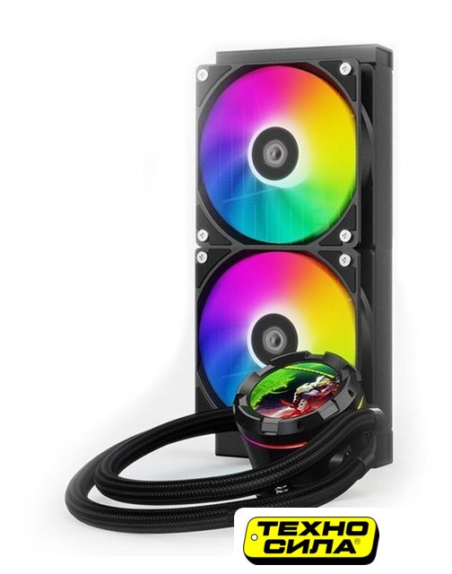 типоразмер 360, рассеивание до 350 Вт, макс. шум 35.2 дБ, вентилятор 120 мм, 1800 об/мин, PWM, ARGB подсветка, черный