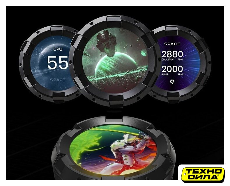 | Встроенный дисплей на водоблоке | 480x480, 24-bit, 16.7 million |