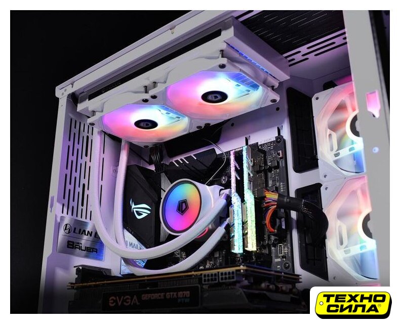 высота 28 мм, вентилятор 140 мм, обратное направление потока, 1600 об/мин, PWM, подшипник гидродинамический (FDB), ARGB подсветка, макс. шум 29.4 дБ, подключение цепочкой