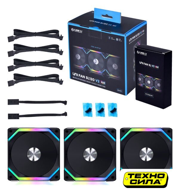 Комплектация | 3 вентилятораКонтроллер2 кабеля для подключения цепочкой4 кабеля для подключения к контроллеруКабель microUSB на USB 9pin12 винтовДвусторонняя клейкая лента |
