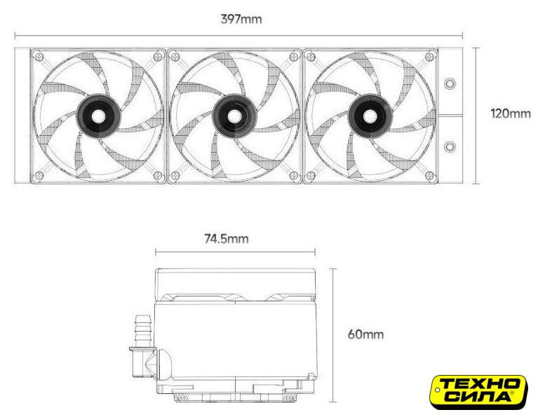 типоразмер 360, рассеивание до 300 Вт, макс. шум 29 дБ, вентилятор 120 мм, 2000 об/мин, PWM, ARGB подсветка, белый