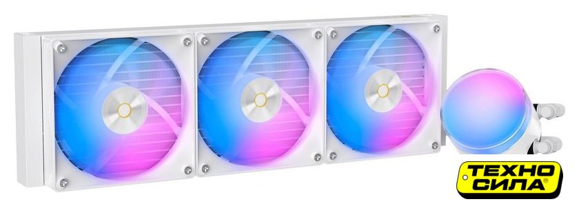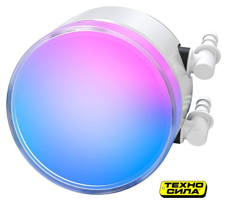 типоразмер 240, рассеивание до 280 Вт, макс. шум 29 дБ, вентилятор 120 мм, 2000 об/мин, PWM, ARGB подсветка, белый
