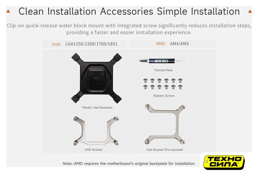 | Комплектация | комплект креплений, термопаста, винты, документация |