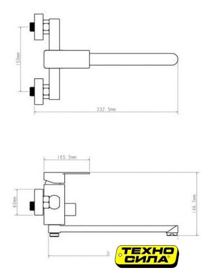 однорычажный смеситель для ванны и душа, монтаж на стену