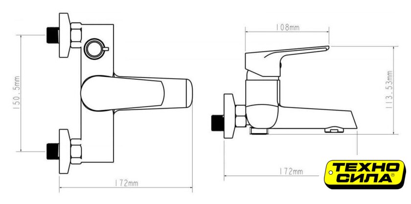 однорычажный смеситель для ванны и душа, монтаж на стену