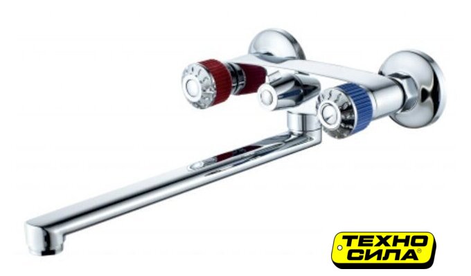 двухвентильный смеситель для ванны и душа, монтаж на стену