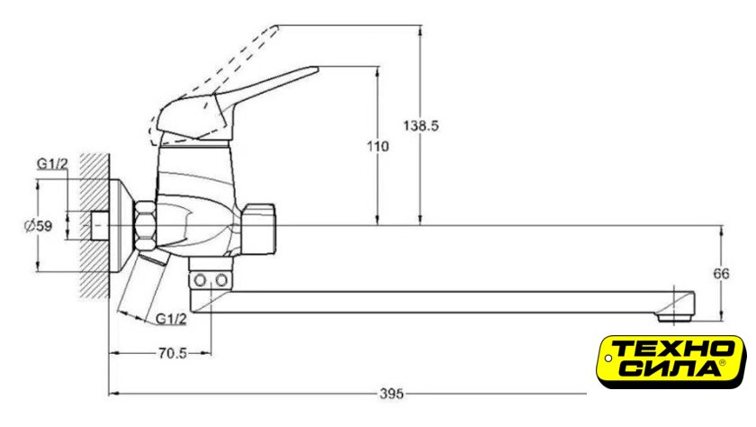 однорычажный смеситель для ванны и душа, монтаж на стену