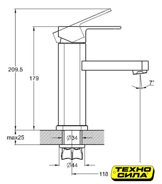 | Длина (вылет) излива | 118.5 мм |